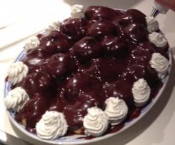- Successivamente posizionare i bignè ripieni su un vassoio e cospargerli con la glassa di cioccolato, far raffredare in frigorifero per almeno due ore;