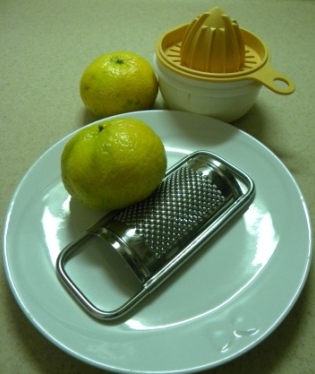 Grattugiare la buccia dei mandarini con una piccola grattugia, spremere i mandarini e passarli al colino.