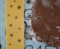 - Stendete ora sia la sablèè classica che quella al cioccolato, creando due strisce di 6,5 cm d'altezza e 3 cm circa di spessore. Con l'aiuto di un taglia biscotti a forma di stella, forate le strisce di sablèè classica e tenete da parte.