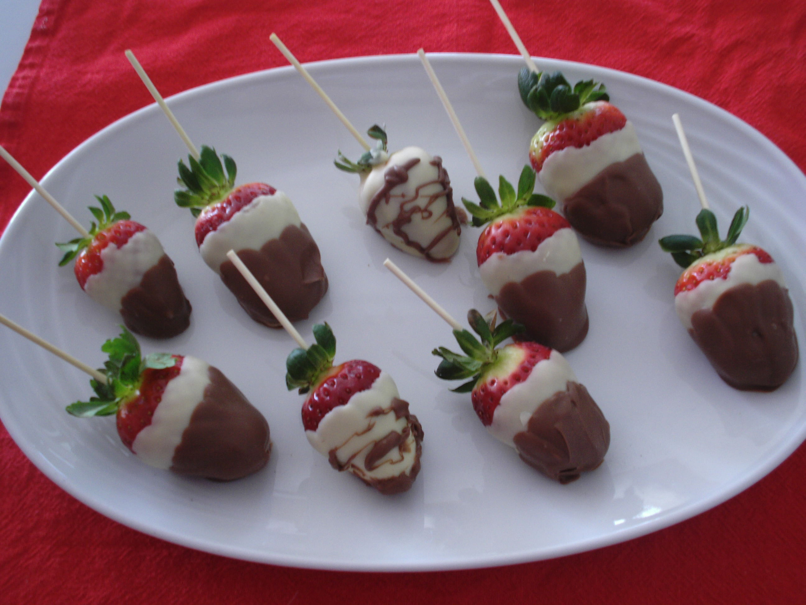 "coperchio chiuso" il cioccolato al latte o fondente tagliato a pezzi e scioglierlo con lo stesso procedimento con cui abbiamo sciolto quello bianco.Intingere le fragole facendo in modo che sia ben visibile la parte del cioccolato bianco.L'accortezza sta nel mantenere distinti i vari strati di fragola, quindi strato rosa-rosso, bianco e marrone. Mettere in frigo e lasciare asciugare.Infilzare in ogni fragola lo stecchino di legno e servire il nostro gustosissimo dessert.Lo stecchino di legno lo mettiamo alla fine perchè altrimenti si allarga il buchino e la fragola non ci sta più fissa e ben ferma.