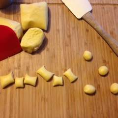"velocità spiga" ; - Divido l'impasto ottenuto in quattro parti e faccio dei rotolini che andrò a tagliare formando delle palline grandi come una noce (vedi foto);