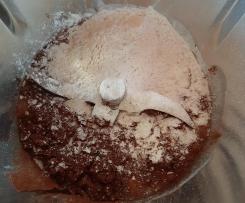 1. Nel coperchio chiuso"coperchio chiuso" mettere tutti gli ingredienti cioè latte cacao zucchero olio pizzico di sale e amalgamare 30 secondi Vel 5 mettere sopra al bimby il cestello per non far schizzare