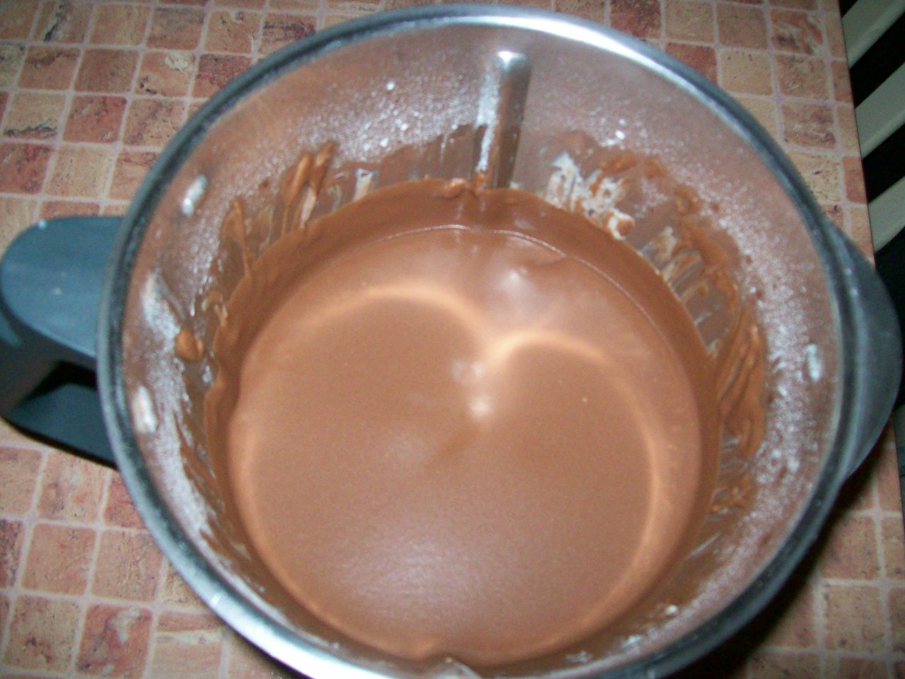"coperchio chiuso" mettere i biscotti spezzati: 8sec / vel 7. Aggiungere il burro e il cacao: 15sec / vel 5. Mettere nello stampo, pigiare bene sul fondo e ai bordi, mettere in frigo. Montare la panna, metterla in frigo. Il cioccolato sciogliere a bagnomaria, raffreddare un pò. Nel