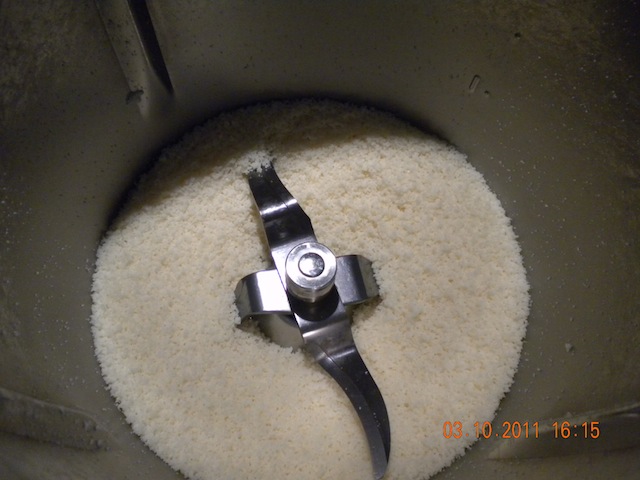 Inserire nel coperchio chiuso"coperchio chiuso" il parmigiano e grattugiare da vel. 4 a vel 10 per 15 sec.