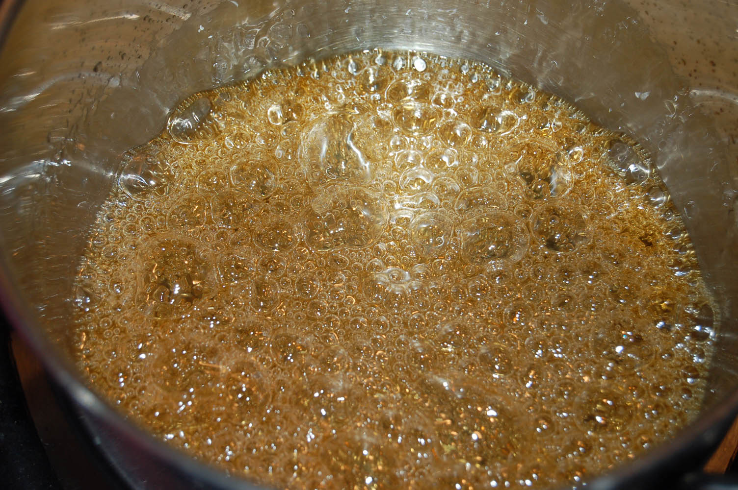 "coperchio chiuso" . Quando lo sciroppo di acqua e zucchero comincia a bollire forte, producendo delle belle bolle grandi e scoppiettanti, come in foto,