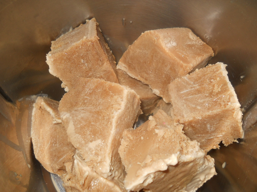 - Quando il nostro composto sarà stato il tempo neccessario nel freezer riprendetelo e toglietelo dal contenitore e tagliate a pezzi