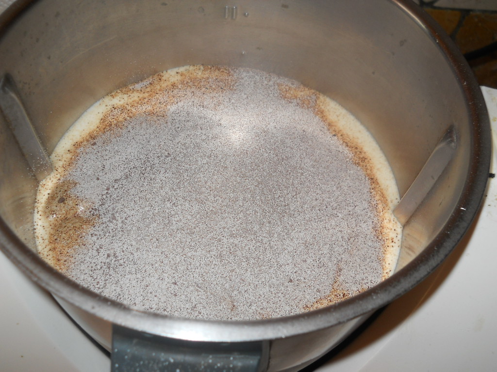 "coperchio chiuso" tranne il fruttosio e agar agar e cuocere per 7 min./80°/vel 4 con sopra il misurino. - Quando sarà trascorso il tempo fate diventare freddo il composto;