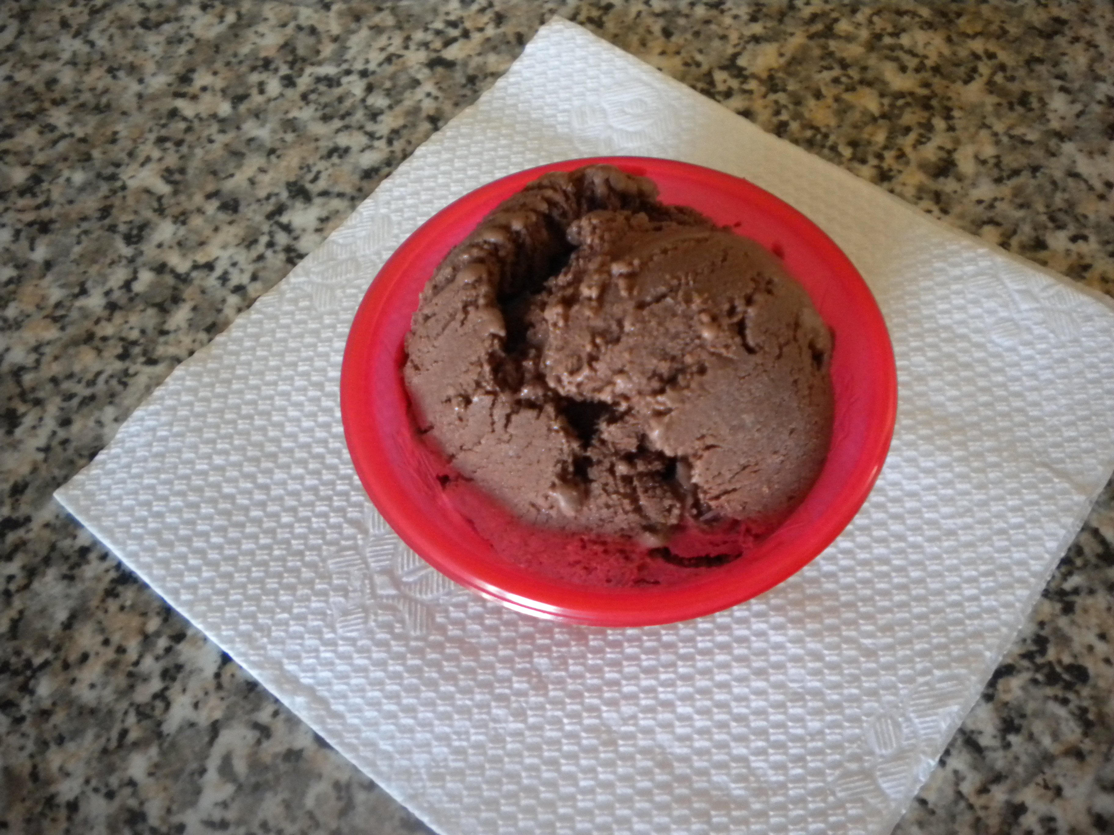 "coperchio chiuso" la panna 4 min 80° vel 3, aggiungere il cioccolato spezzettato e il dolcificante e far andare ancora 4 min 80° vel 3. Aggiungere il latte 8 min 80° vel 3, versare in un contenitore largo e basso e quando è freddo riporre in congelatore per almeno 18 ore. Quindi tagliare a pezzi e metà dose per volta mantecare portando da vel 5 a vel 9 per 30 sec spatolando quindi controllare la consistenza e se necessario continuare la mentecatura per altri 15 sec o comunque fino al raggiungimento della consistenza desiderata (attenzione però a non esagerare !!!!). Mettere in una vaschetta e se non lo si serve subito conservare nel freezer.Scusate per la foto ma questo è quello che sono riuscita a salvare dopo averlo servito guarnito con scaglie di cioccolato e granella di nocciola ma .... non ho fatto in tempo a prendere la macchina fotografica