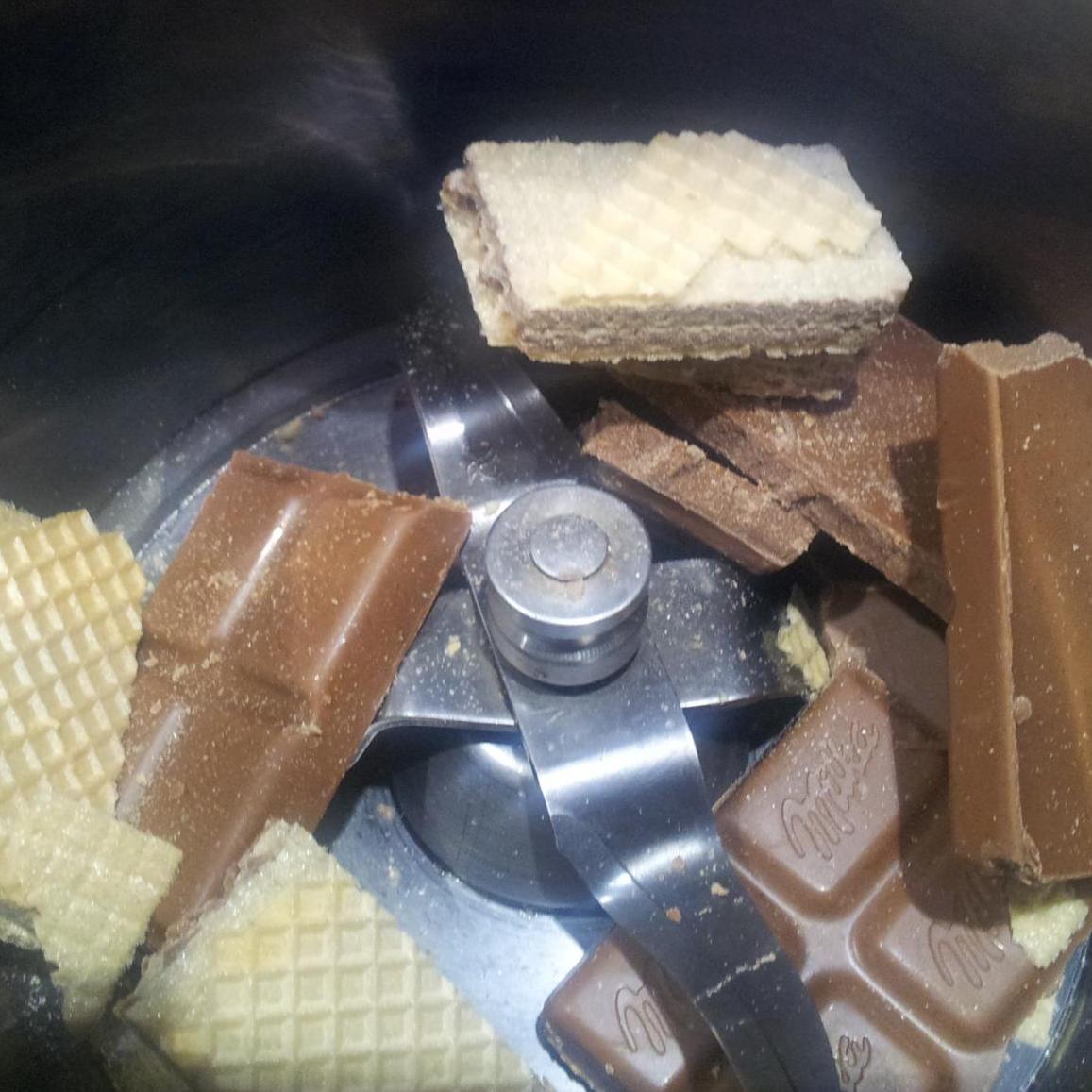 Tritare il cioccolato con i wafer, 10 secondi velocità 10.