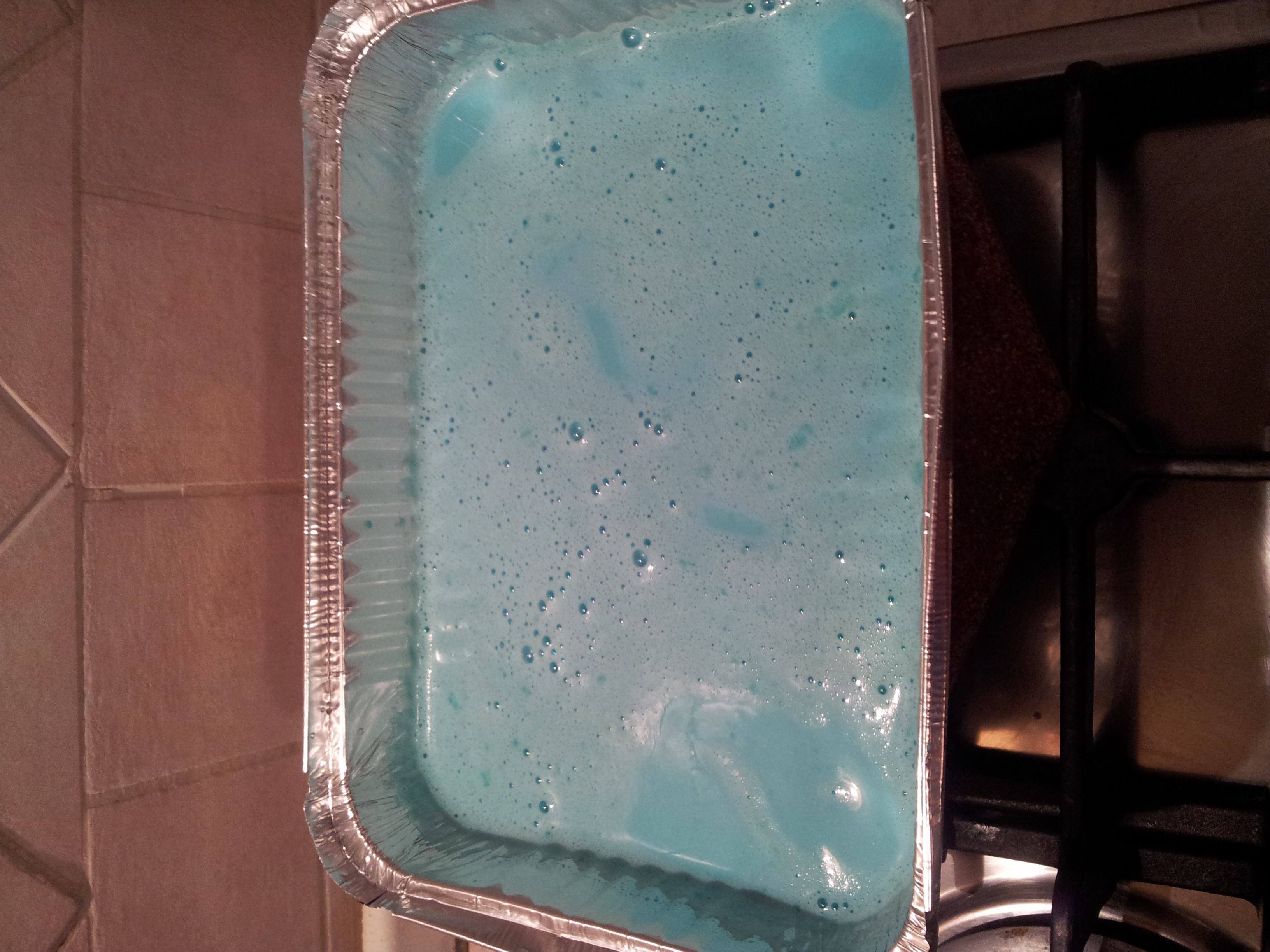 Versare in un contenitore largo e basso e lascia raffreddare, mettere in freezer fino a completo congelamento. Tagliare a pezzi piccoli e farlo mantecare bene 15 sec vel 9 e 20 sec vel 4