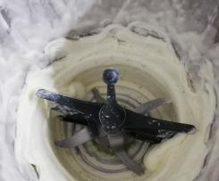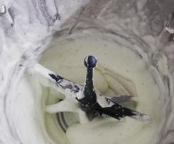 Riunire sul fondo la panna. - Aggiungere lo yogurt greco, il rum e lo sciroppo di menta e mescolare per 20 secondi a velocità 2.