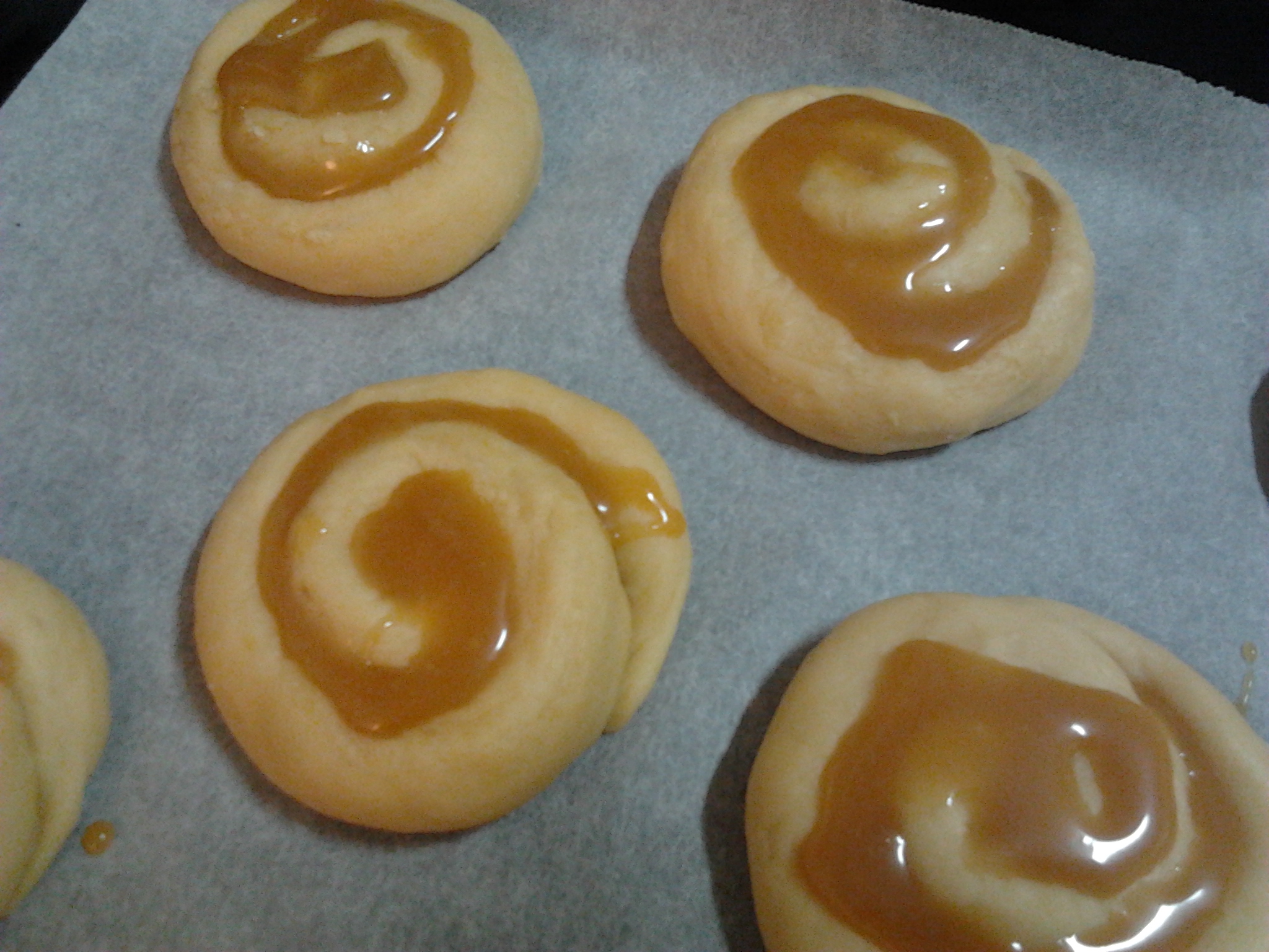 Versare la mou ormai fredda sulle girelle seguendo la spirale per farla entrare nelle fessure e infornare a 180° per 30 minuti.