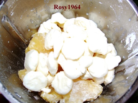 Unire il latte, l’ananas e il succo congelati, il limoncello, mantecare: 2 min. da vel.5 a vel.7 spatolando.