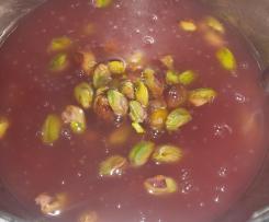 "coperchio chiuso" acqua, miele, zucchero, amido di mais, cremor tartaro, e acqua di rose 100°C 20 Min. Vel. 3. (senza misurino) e quando mancano 30 Sec. allo scadere del tempo, incorporare i pistacchi dal foro. - Foderare uno stampo quadrato o tondo (20 cm) con pellicola alimentare o carta forno (se è di silicone non serve) spolverizzare con zucchero a velo (messo da parte) e stendere il composto che dovrà raffreddare e rapprendersi.