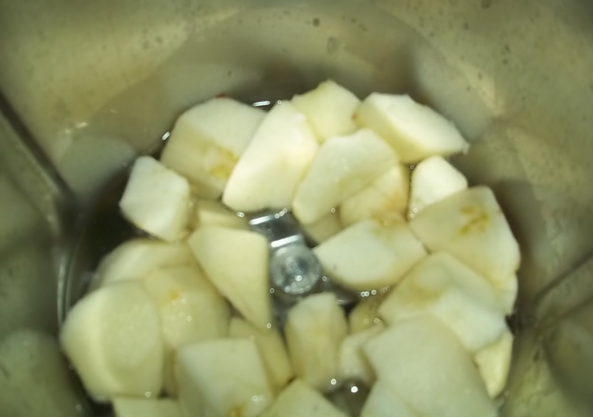 2. Aggiungere il succo di limone e i pezzetti di mela, frullare: 1 min./gradualmente da vel. 2 a vel. 10.