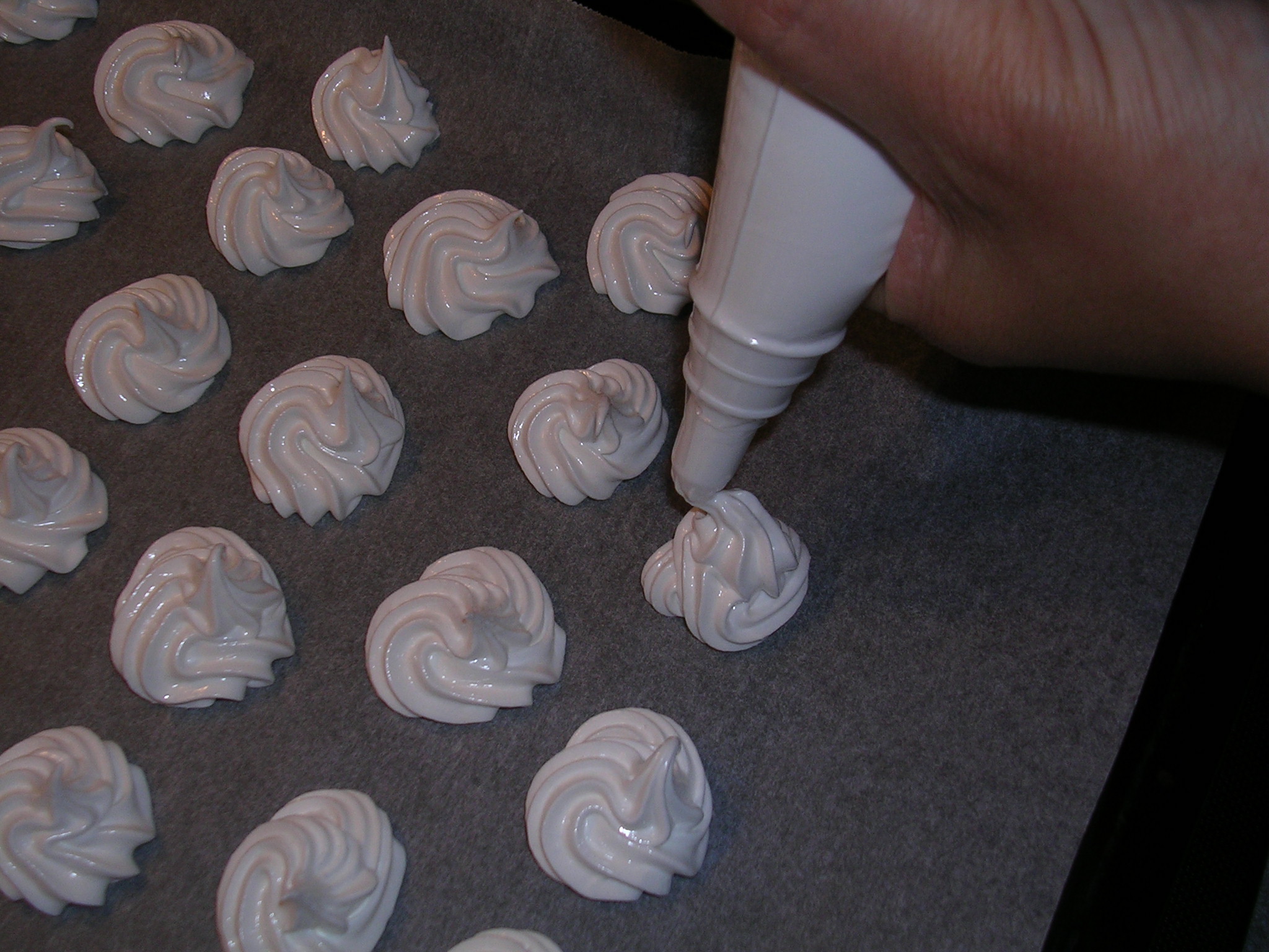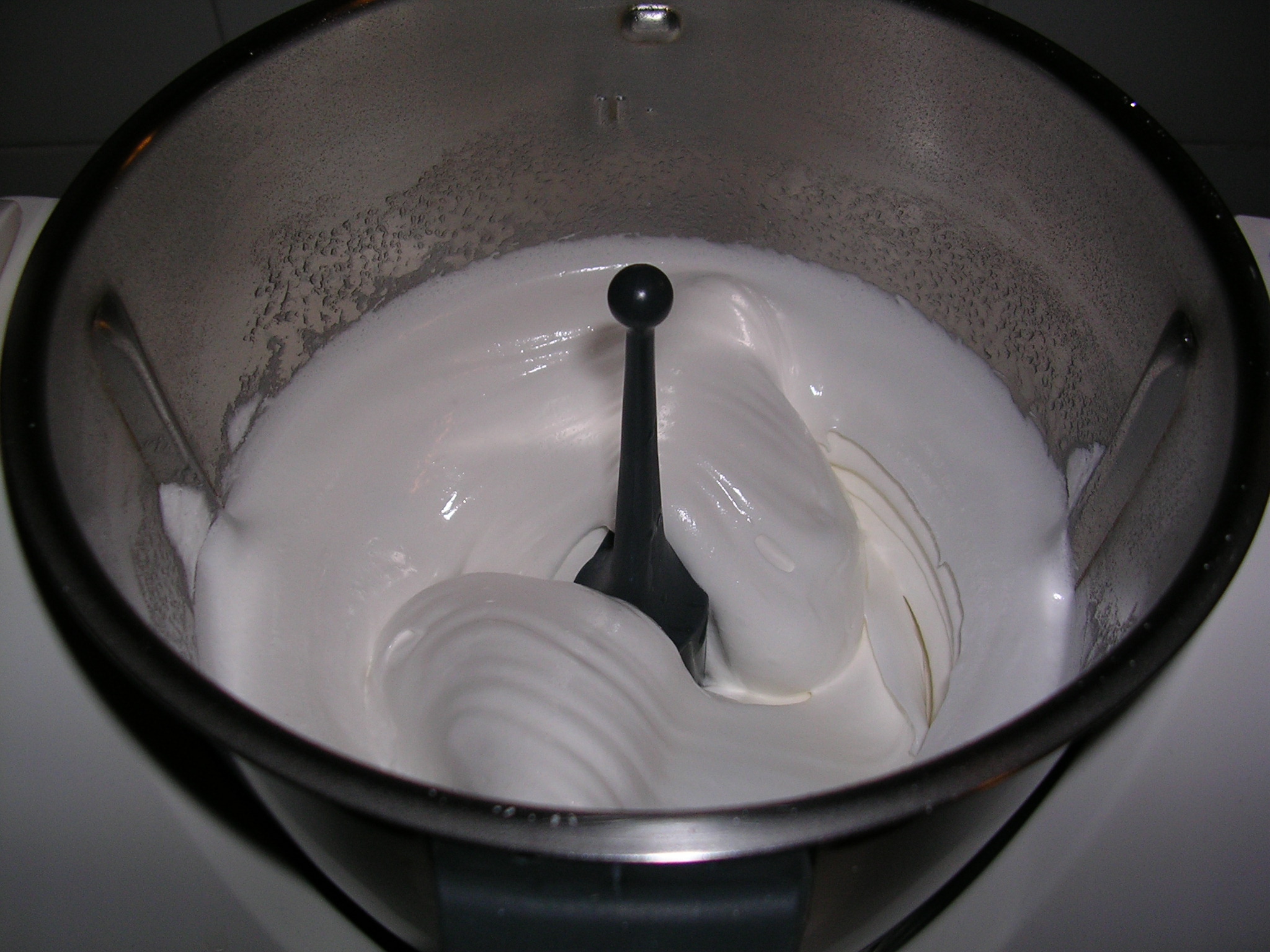 1. Mettere nelcoperchio chiuso"coperchio chiuso" ben asciutto lo zocchero e polverizzare per 20/30 secondi a velocità 8 , inserire la farfalla , il sale e gli albumi , montare per 7 minuti 37° velocità 2 . Lasciare riposare a coperchio chiuso"coperchio chiuso" aperto per 10 minuti e riavviare per 6 min. velocità 2 .Riempire la sac-a -poche , va bene anche quella della cuki usa e getta con il beccuccio a stella , sul piatto del forno ricoperto con l'apposita carta formare dei riccioli oppure delle lettere, sono molto simpatiche per guarnire le torte di compleanno . Infornare a 100° ventilato gia caldo per  circa un'ora , lasciar raffreddare le meringhe a forno spento e chiuso , io le preparo la sera e le tolgo al mattino . Si conservano in un contenitore di plastica ermetico  anche per una settimana .