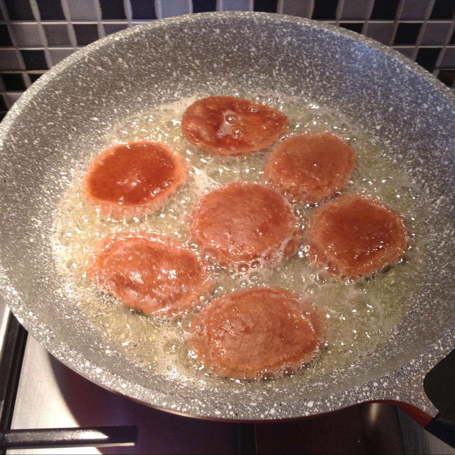 Friggere in abbondante olio di arachide e far scolare su carta assorbente o carta fritti.. Fare attenzione nel rigirarle poiche la sfoglia è molto friabile