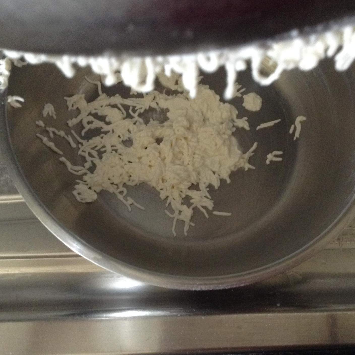 Per prima cosa mettere i 300 grammi di ricotta a scolare in un setaccio con pirofila di acciaio sotto e metterla in frigo.