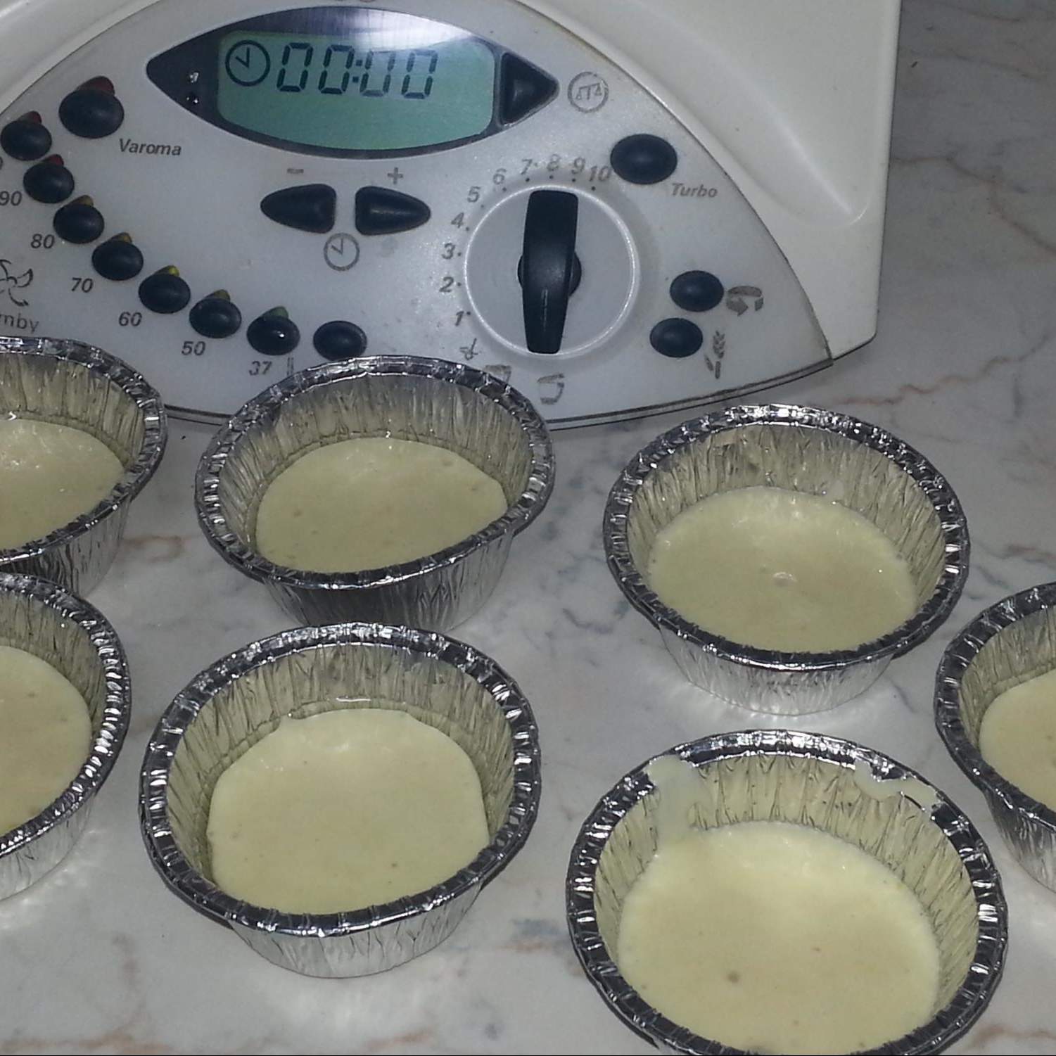 Versare negli stampini oliati riempiendoli per metà.
