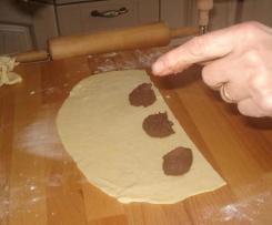 8. Riprendere la farcia e disporre su metà della sfoglia tante palline di crema grandi come noci e distanti tra loro circa 5 cm.