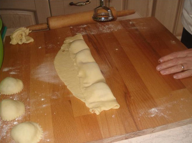 9. Ripiegare l'altra metà di sfoglia sopra le palline di crema e premere bene i bordi, in modo da evitare fuoriuscite durante la cottura.