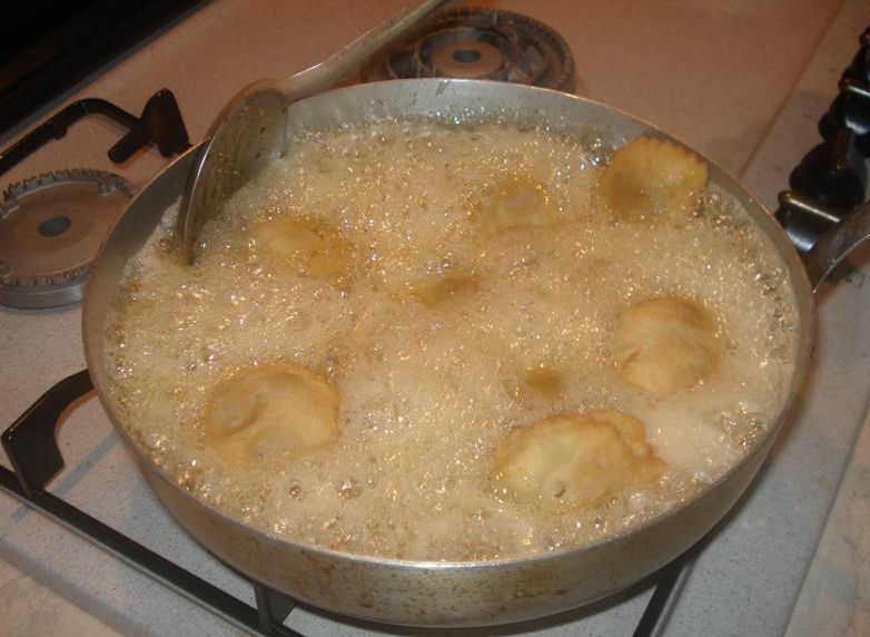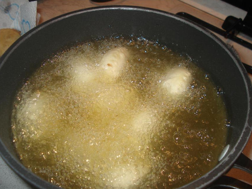 13. In una padella scaldare abbondante olio e friggervi i panzerotti pochi alla volta, fino a quando non saranno ben dorati.