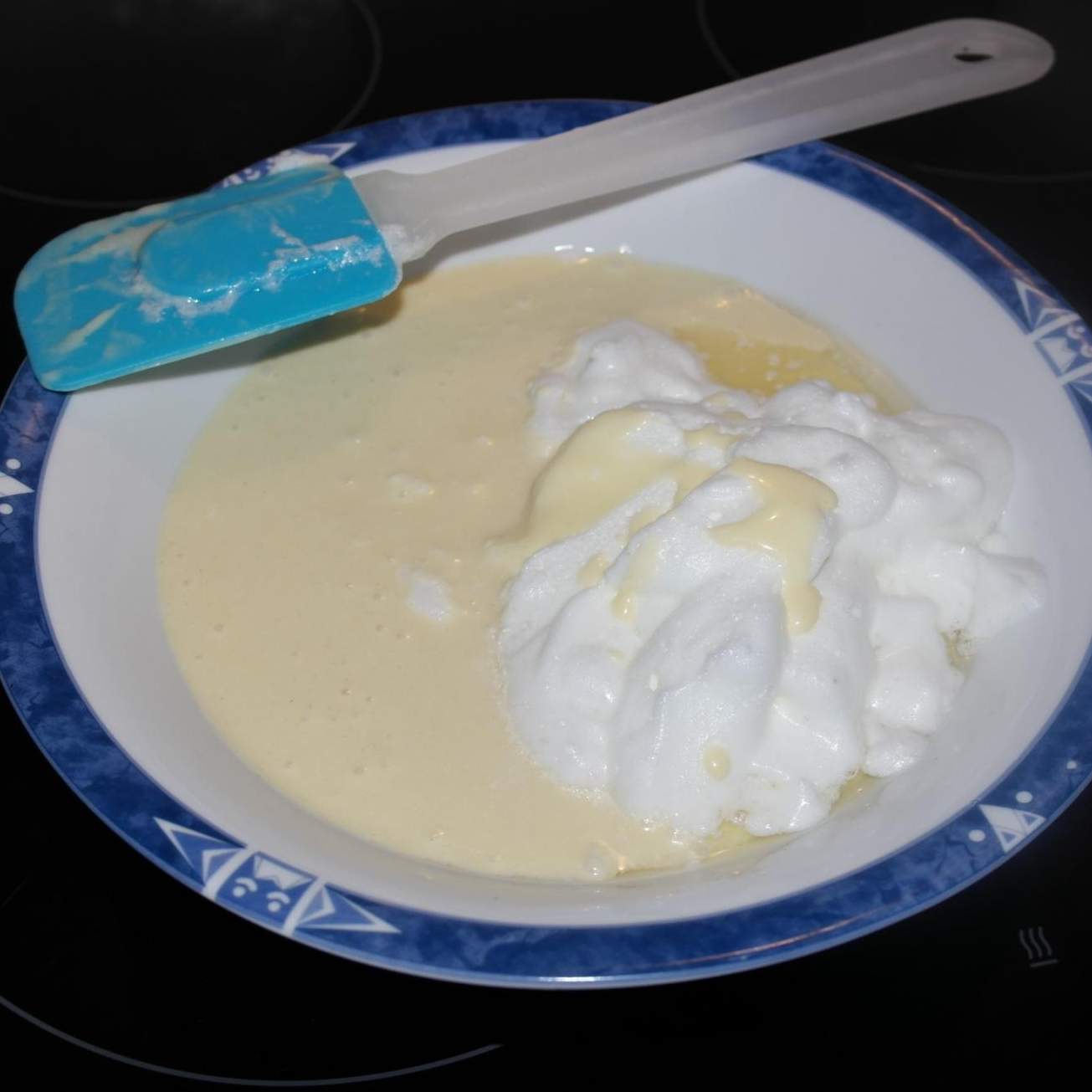 Amalgamare a mano le chiare a neve con il resto dell'impasto fino ad ottenere un composto omogeneo.