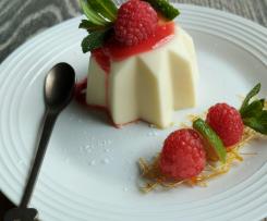 Panna cotta al lime con salsa di vino bianco e lamponi (contes ristorante)