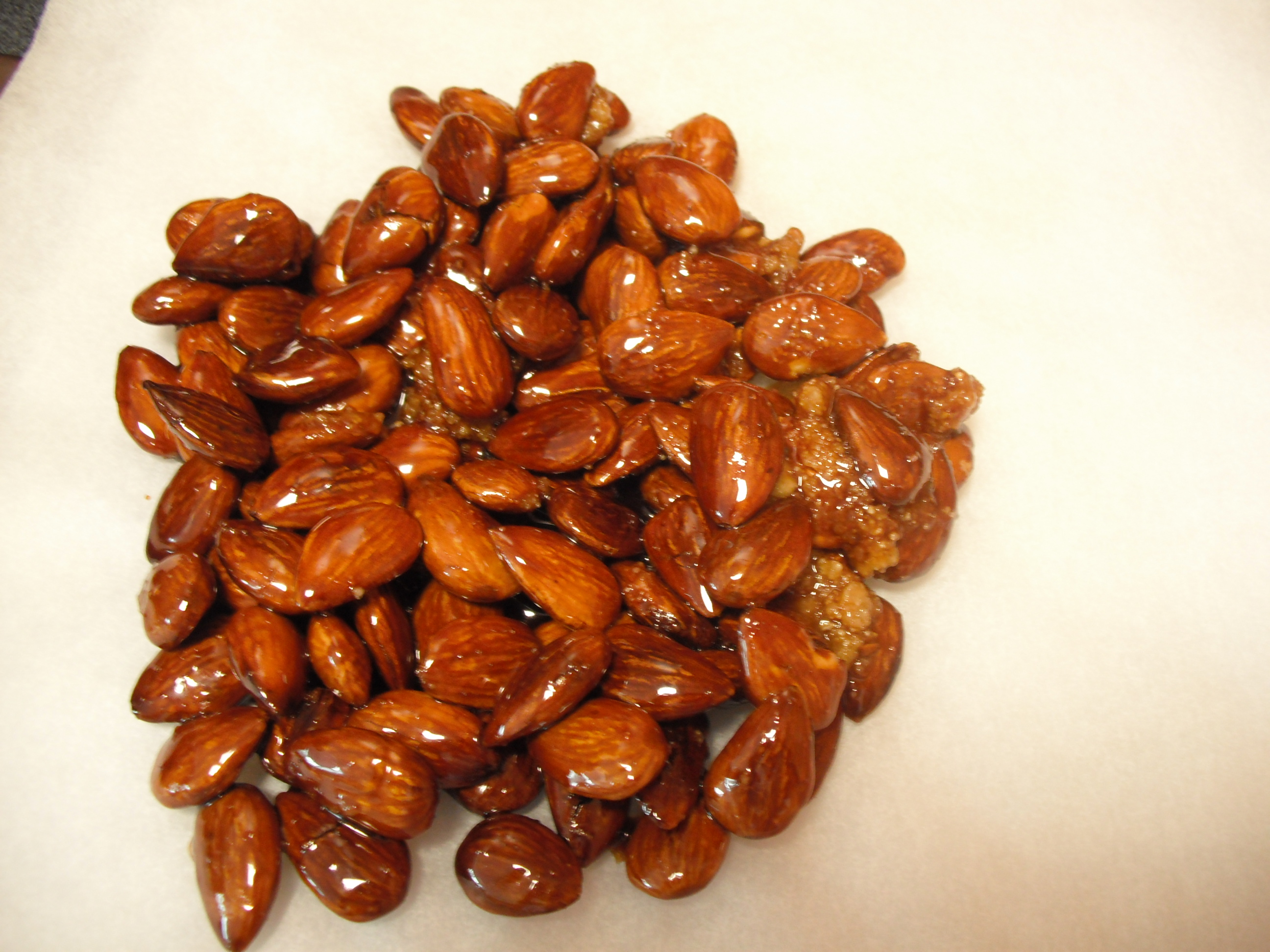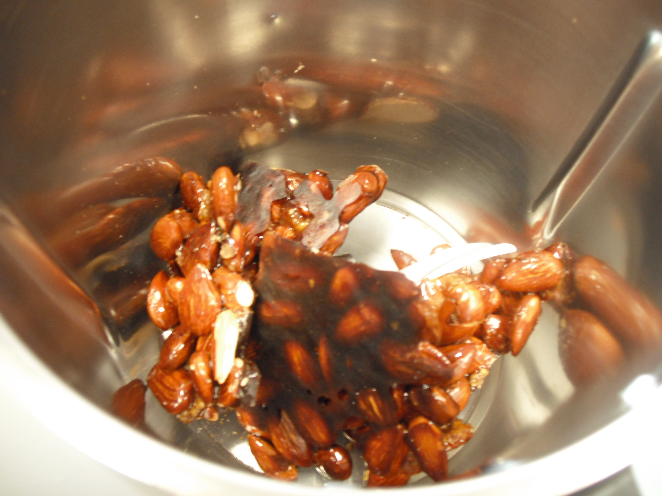 - Quando comincia a caramellarsi aggiungere le mandorle abbrustolendole insieme al caramello;