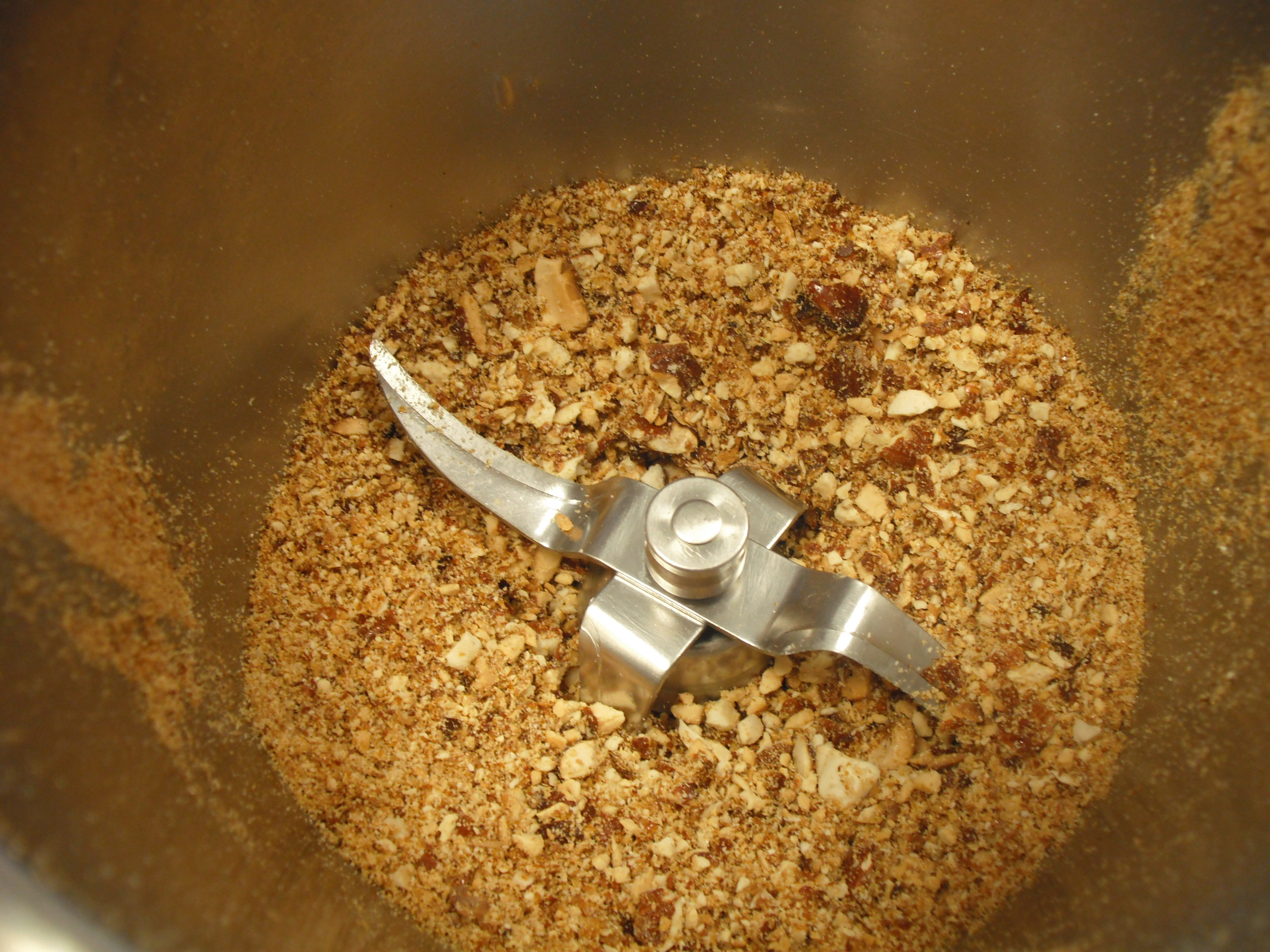 - Nel boccale pulito e asciutto versare il croccante a pezzi e tritare: 6 sec./vel 6, tenere da parte;