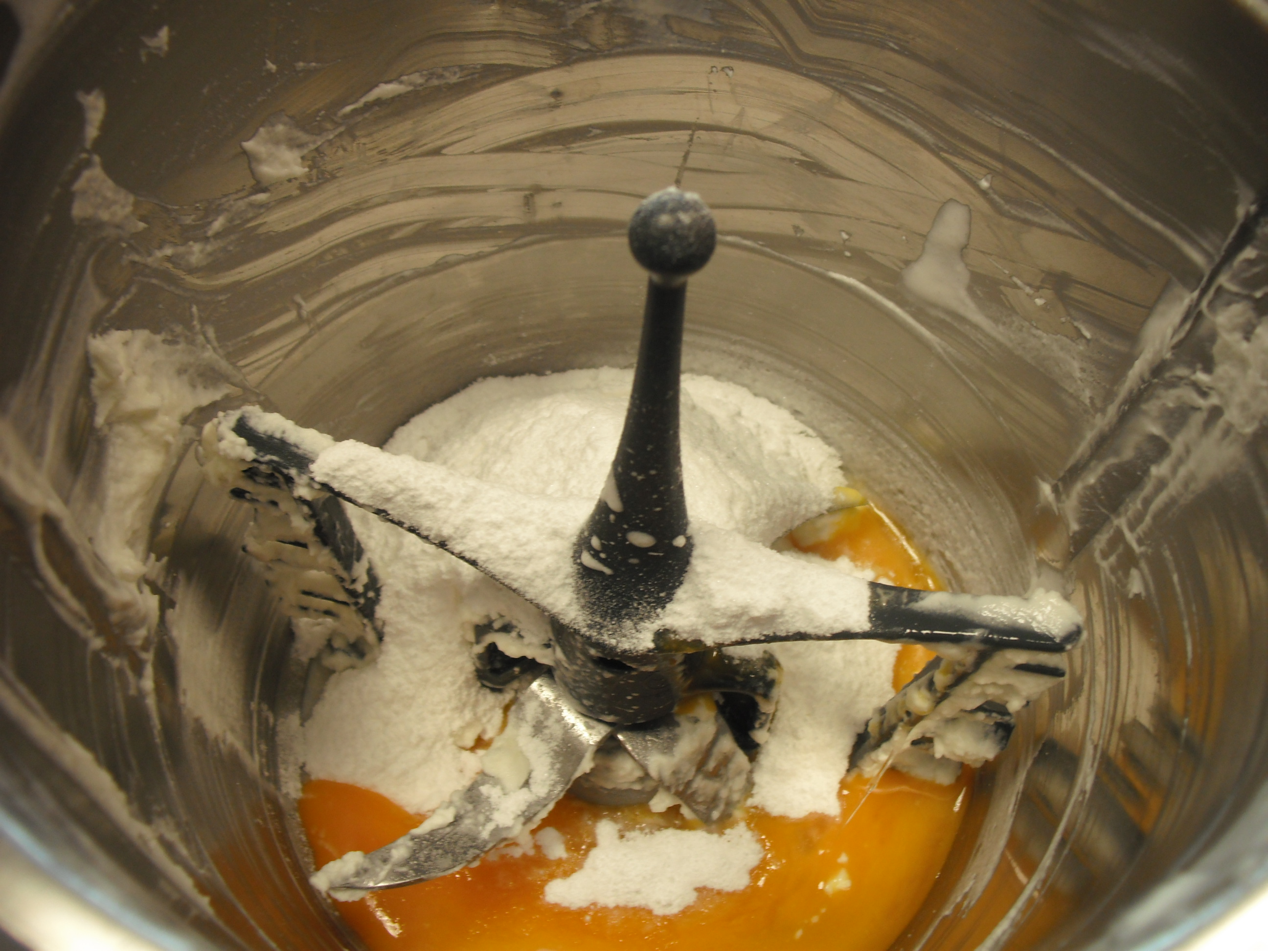 - Senza lavare il boccale e sempre con la farfalla posizionata montare i tre tuorli con lo zucchero a velo e la vanillina: 4 min./vel. 4, (devono essere belli spumosi) e mettere da parte;