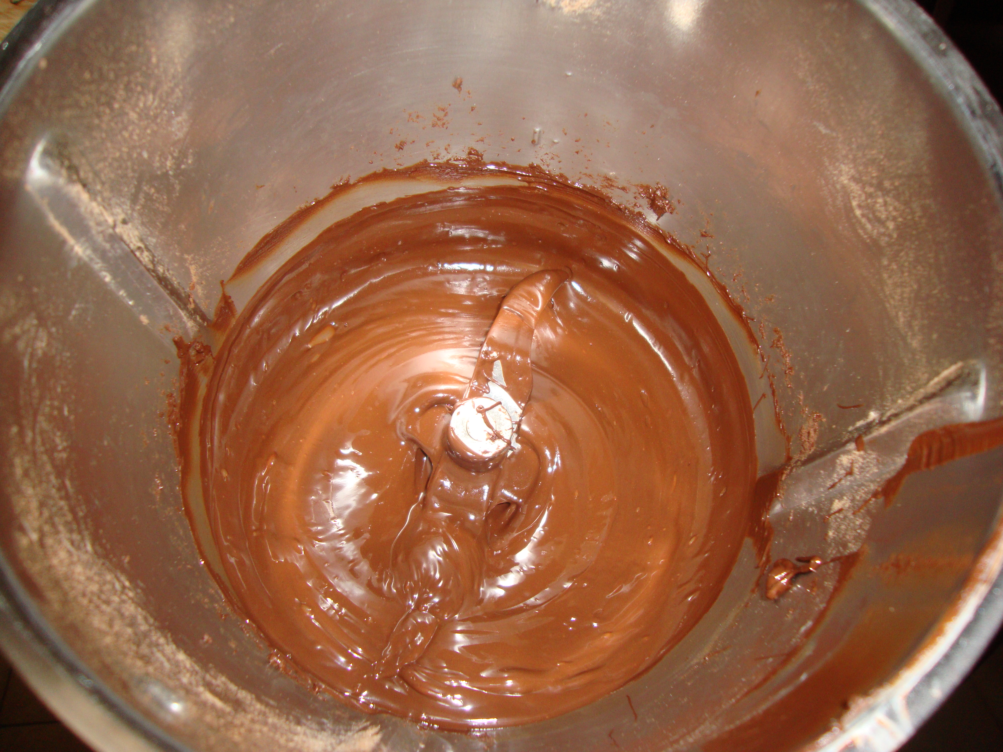 "coperchio chiuso" inserite la cioccolata a pezzi, 10 sec., vel. 7 e poi 3 min. e 30 sec., 50°, vel. 3; date una girata con la spatola e di nuovo 3 min., 50°, vel. 3. A questo punto la cioccolata sarà completamente sciolta. Fate raffreddare (anche nel