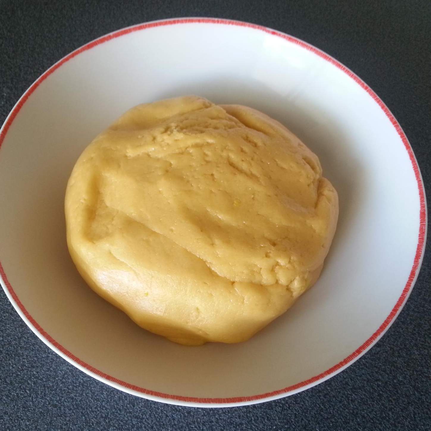 Frullare zucchero e buccia di limone 10 sec. vel.7, unire la margarina e amalgamare 10 sec. vel.4.Aggiungere farina, frumina, tuorli e lievito e impastare 30 sec. vel.4.