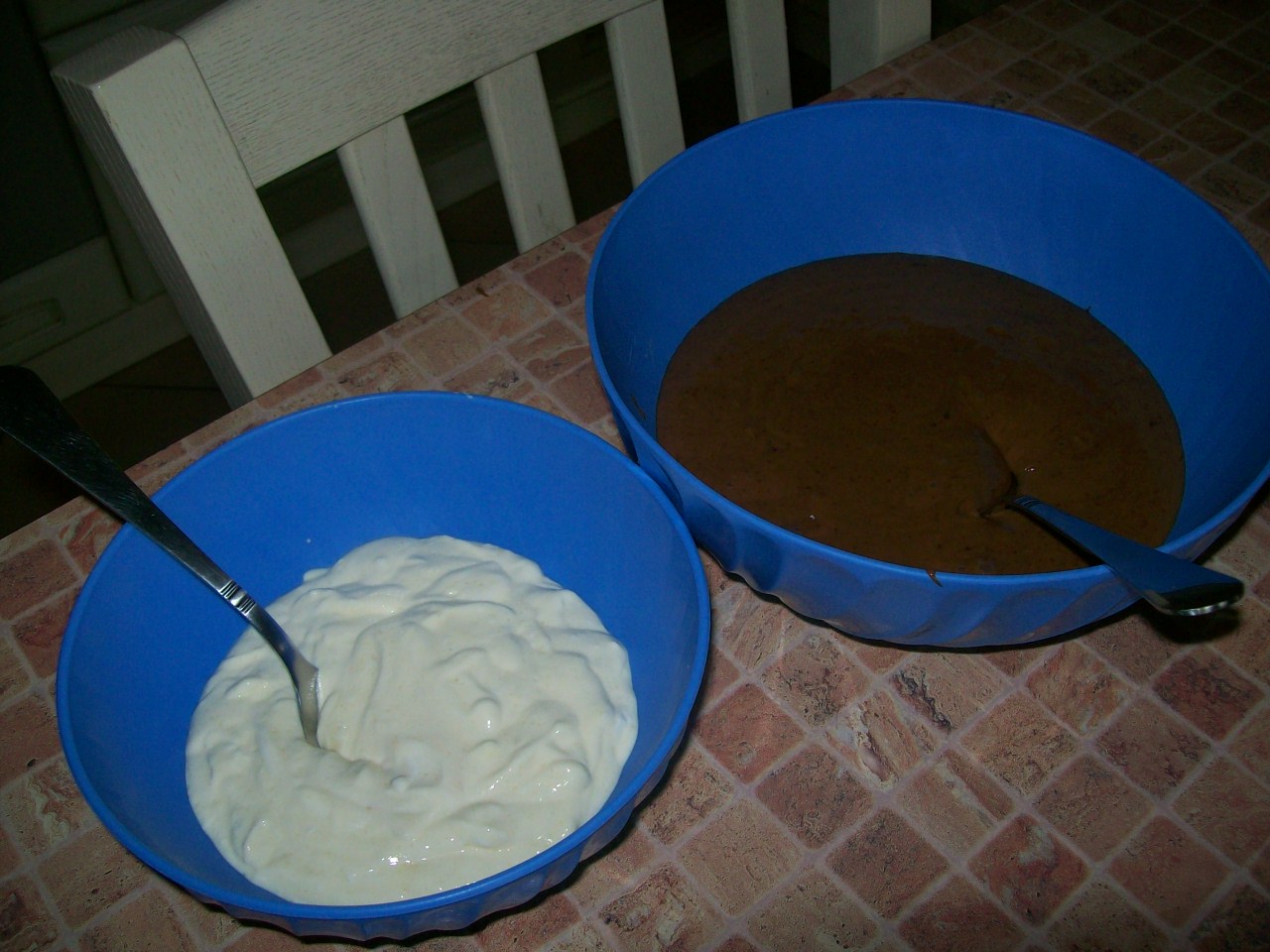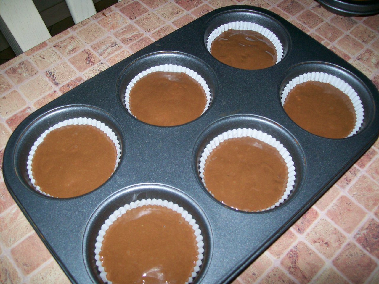Mettere negli appositi stampi 1 cucchiaino di impasto, poi 1 di ripieno, coprire con 1 di impasto. Cuocere per 20-30 min / 180°.