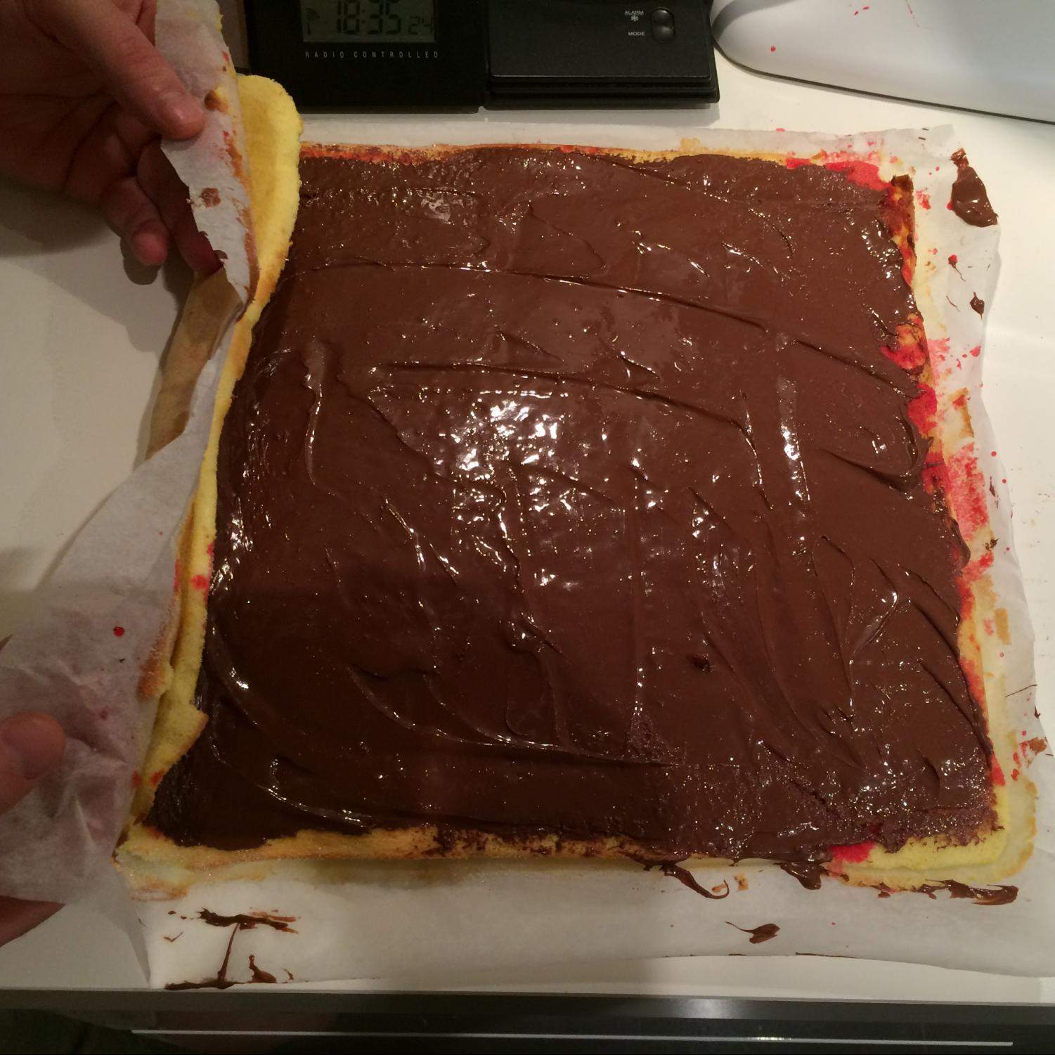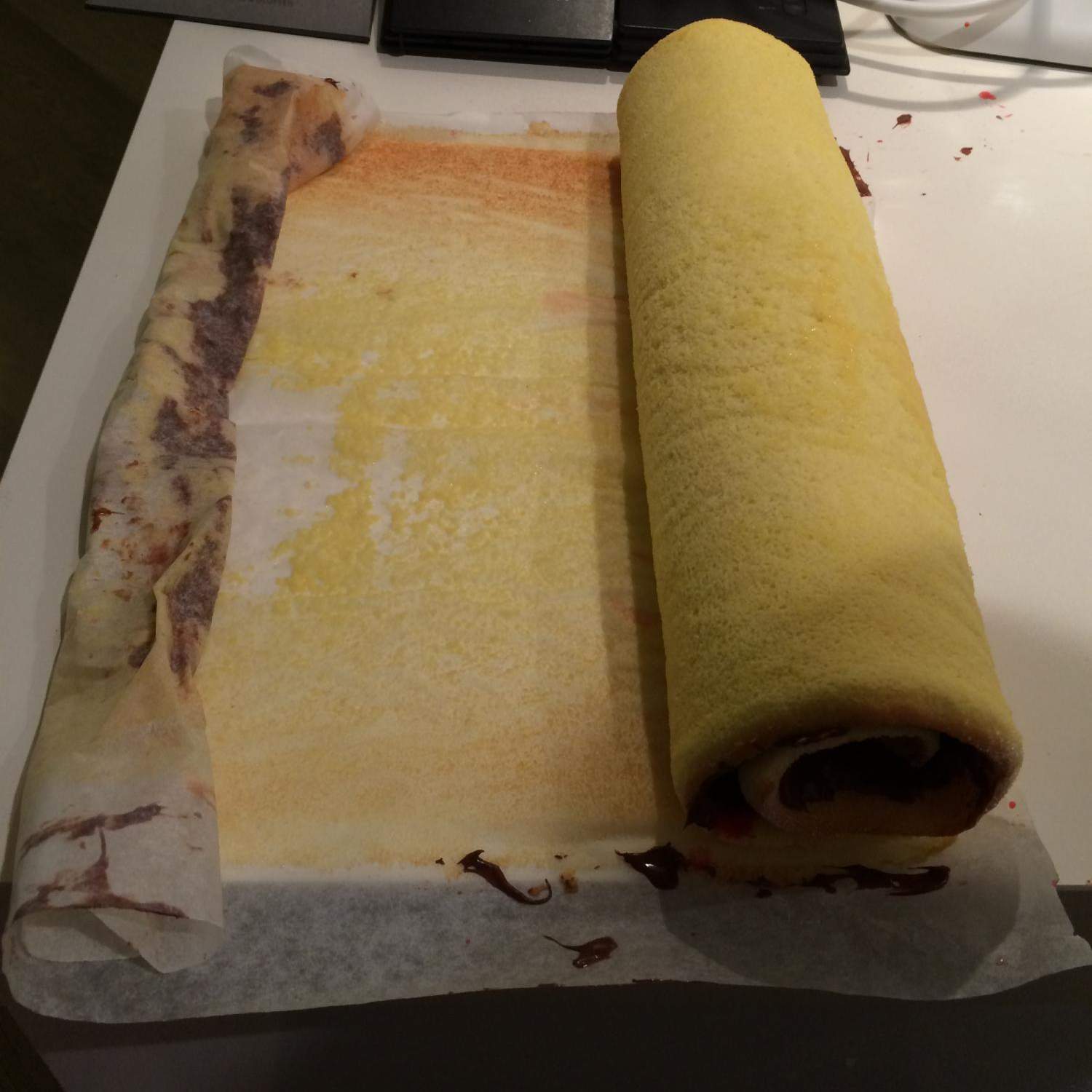 Arrotolare con delicatezza, facendo attenzione aiutandosi con la carta da forno.