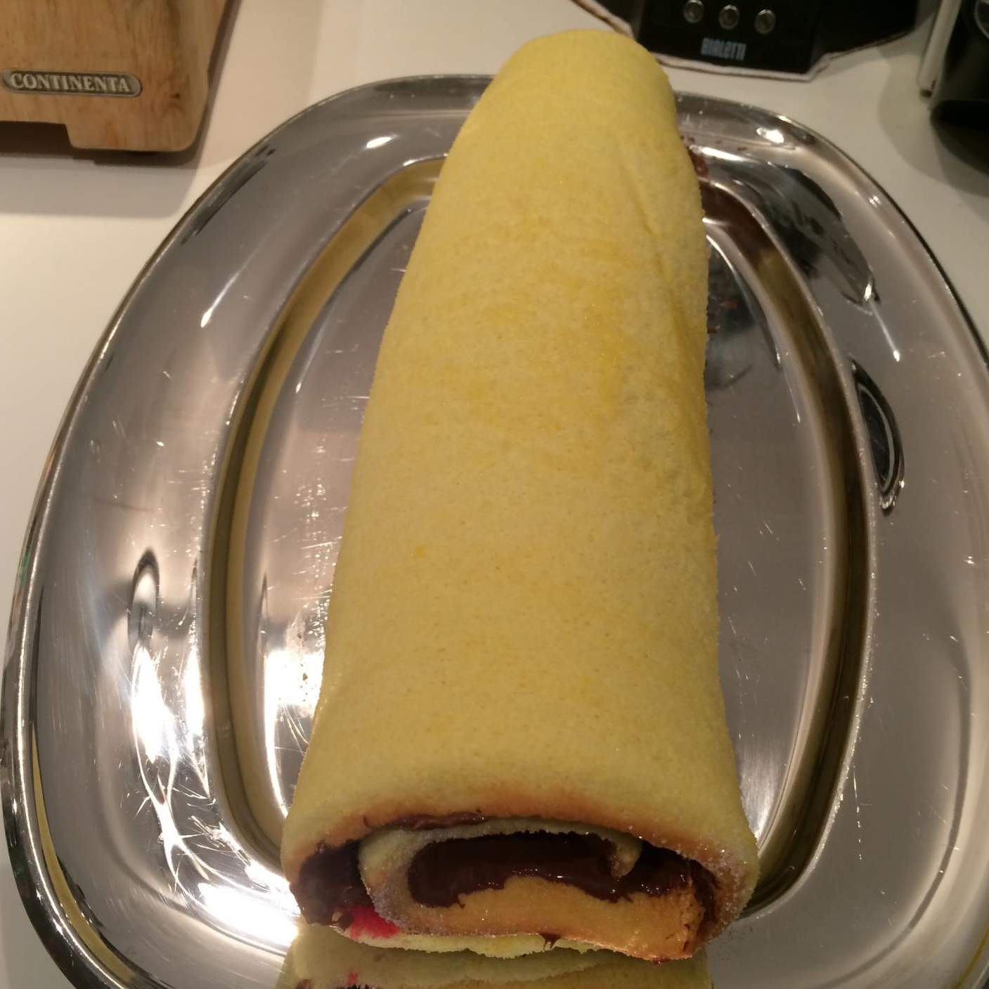 guarda puoi utilizzare anche la classica bagna che utilizzi per il pan di spagna oppure ancora più facile e veloce metti a bollire dell'acqua in un pentolino con lo zucchero, lascialo raffredare e poi utlizzalo come bagna per il rotolo.la chicca che ti do è che puoi aggiungere della panna dopo aver spalmato la nutella cosi avrai quella dolcezza in più.
