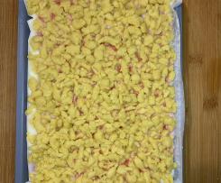 - Ricoprire con la restante frolla aiutandosi con le mani a sbriciolarla ulteriormente.