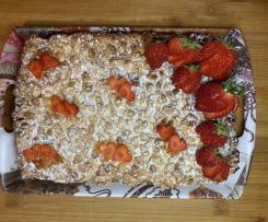 Spolverizzare con zucchero a velo e decorare con qualche fragola - Tagliare a fette e servire