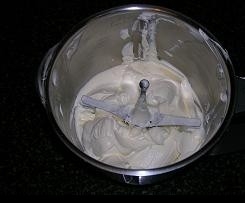 dopo aver asciugato accuratamente il boccale e la farfalla,(vedi consigli libro b ase) inserire gli albumi, montare 4 min, vel 3.5, unendo verso la fine lo zucchero a velo, unire delicatamente con una frusta alla panna