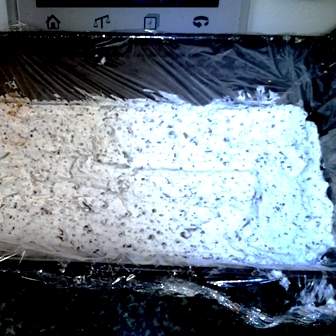 rivestire l’interno dello stampo con pellicola trasparente stendendovi il 1° strato di panna cioccolato