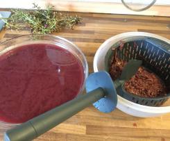 "antiorario" e al posto del misurino appoggiare sopra il coperchio il recipiente varoma per evitare eventuali schizzi. - incastrare la spatola nel cestello che andrà appoggiato su un altro recipiente che farà da contenitore del mosto. Versare nel cestello poco per volta il composto cotto (pelle, semi e succo) ottenuto dal boccale e schiacciare bene con un cucchiaio per ottenere il succo (mosto). Questa operazione richiederà circa 10 minuti.