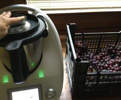 "coperchio chiuso" fino all'orlo. ( Vi assicuro che quest'uva era più di due kg.) - Chiudere il coperchio e inserire il misurino e tenerlo fermo con la mano finché li tritiamo a velocità 5, per 3 secondi.