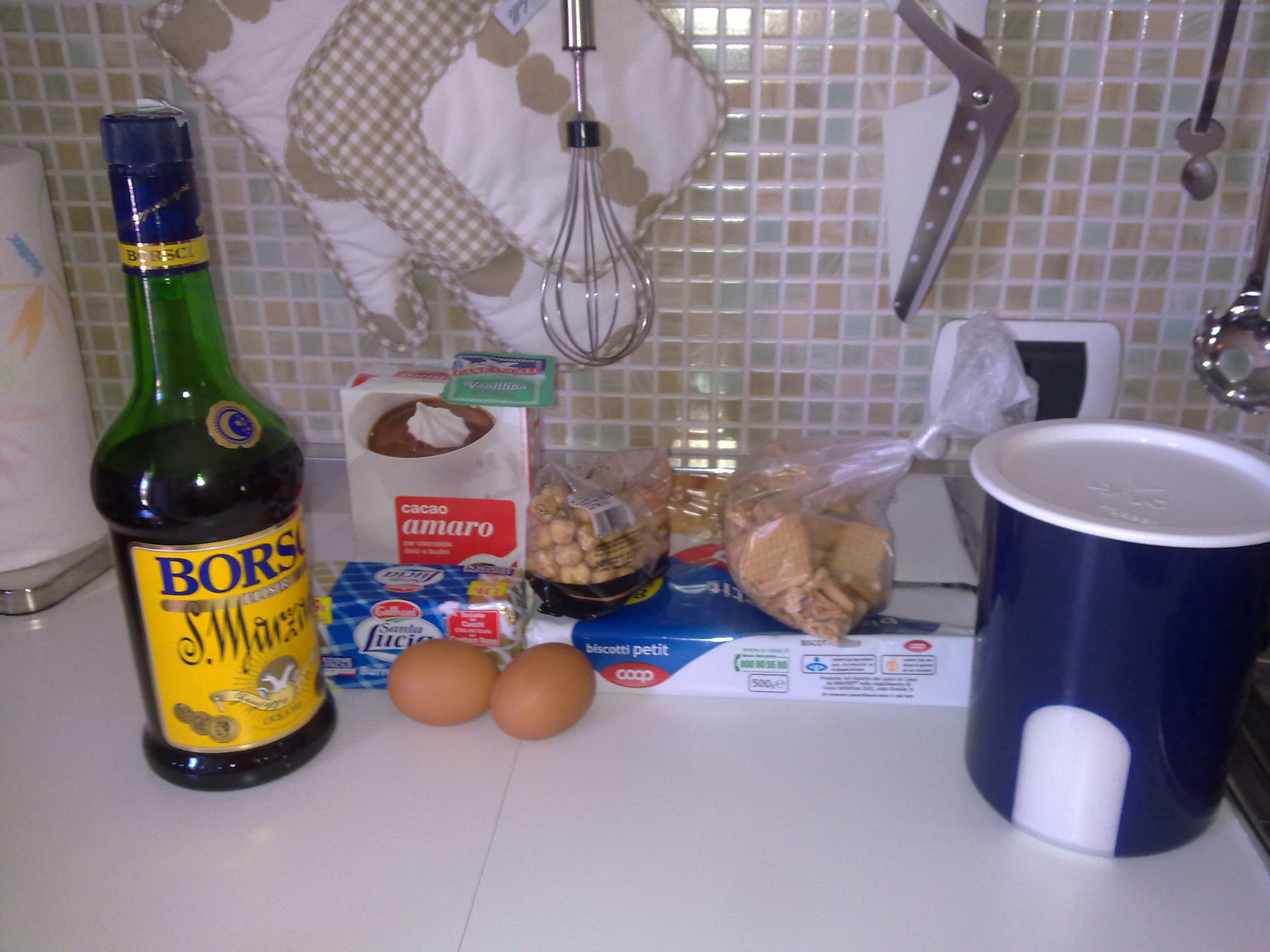 "coperchio chiuso" la vanillina e il cacao amaro vel 6 sec.20.se il cacao si ferma ai laterali del boccale, con la spatola farlo cadere sul fondo.Inserire i biscotti precedentemente tritati con le nocciole vel 4