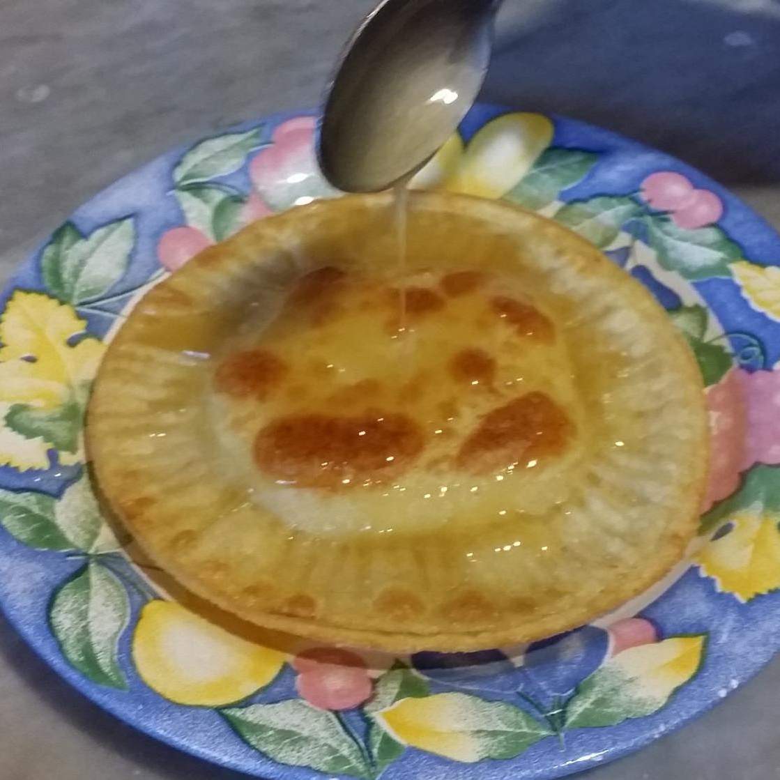 Guarnire con buon miele sardo; l'ideale é il miele di corbezzolo, leggermente amaro, ma va benissimo un miele di asfodelo o altro miele al profumo di Sardegna.