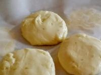 Suddividere il formaggio in palline della dimensione di un'albicocca e schiacciarle nel palmo della mano fino ad ottenere dei dischetti di circa 4 cm di diametro e 1 cm di spessore. Coprire con un canovaccio e lasciare raffreddare.