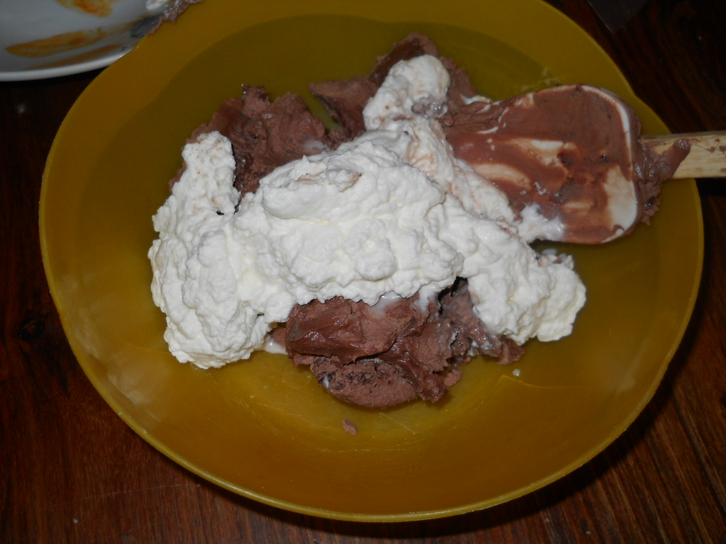 Con il coperchio chiuso"coperchio chiuso" asciutto e ben pulito, inserire farfalla e montare la panna fresca per 1 min. vel 3 deve essere semimontata; incorporate  al composto che averemo lasciato da parte nella ciuotola precedentemente e mescolate con un cucchiaio di legno dal basso verso l'alto.