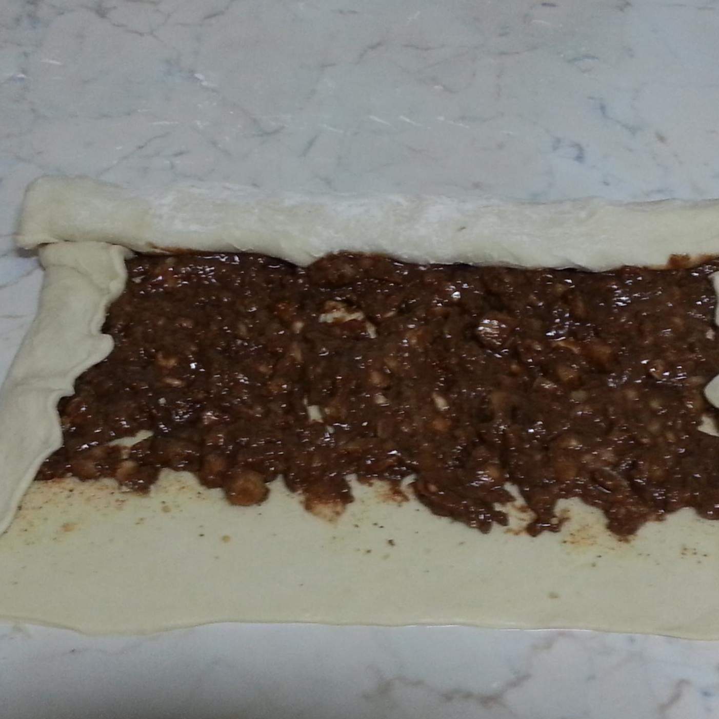 Stendere l'impasto formando un rettangolo di pochi millimetri.
