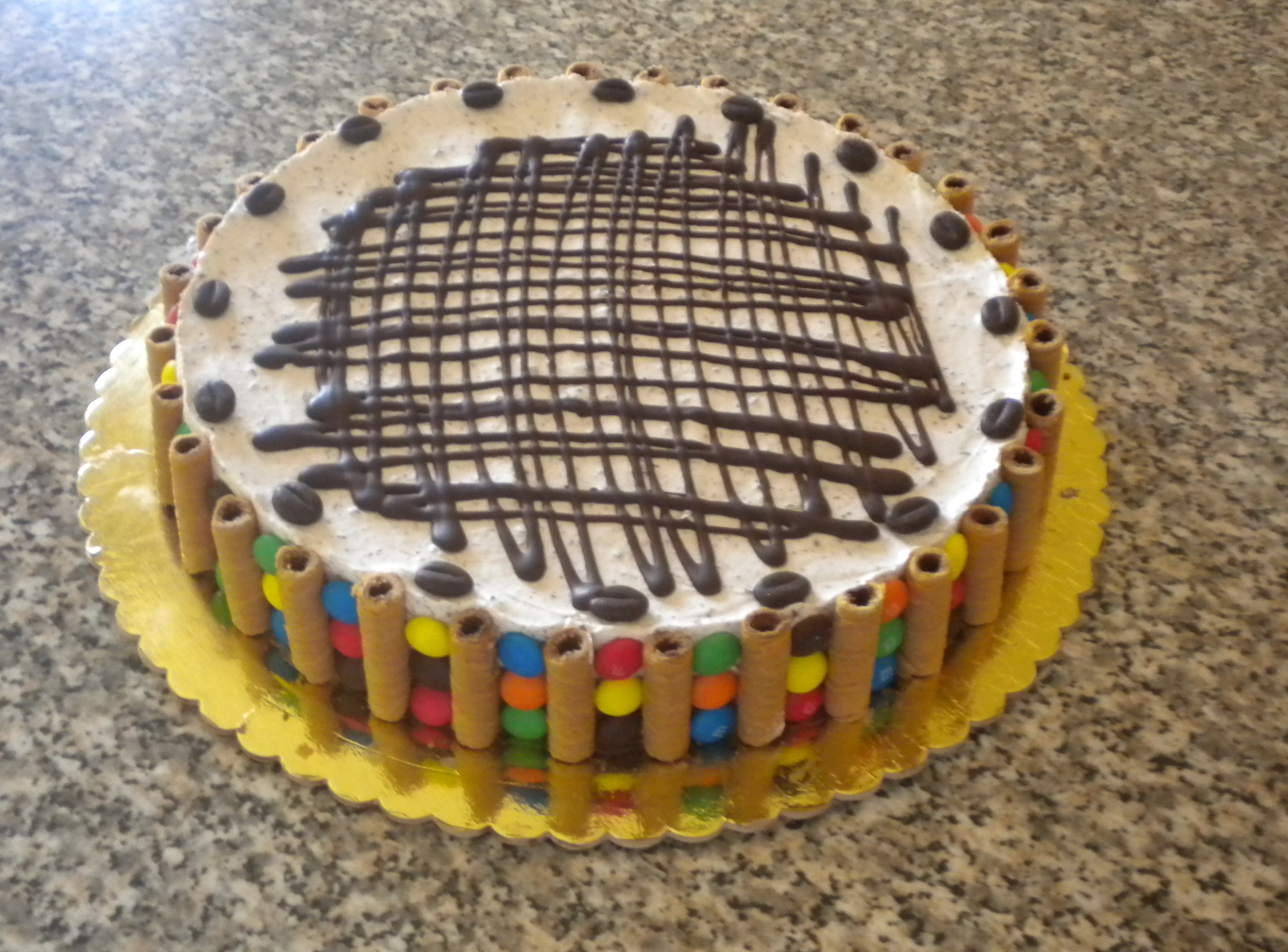 Assemblaggio della torta: disporre il bordo di un piatto a cerniera su un piatto da portata (io uso quelli di cartone della pasticceria) mettere dentro il fondo di pasta biscotto (che deve rimanere perfettamente dentro la cerniera!!!) quindi aggiungere il primo gusto di gelato scelto, livellare bene e aggiungere il secondo, livellare bene e riporre in congelatore per almeno 12 ore. Tirare fuori la torta qualche minuto eliminare delicatamente la cerniera e decorare a piacere quindi riporre dinuovo in congelatore per almeno 5o6 ore . Tirare fuori circa 20 minuti prima di servire