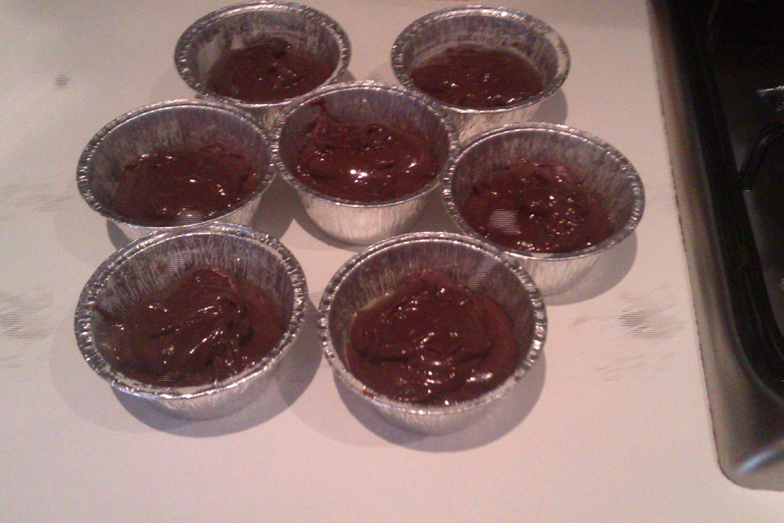 Ungere gli stampini con burro e farina e riempirli per metà.