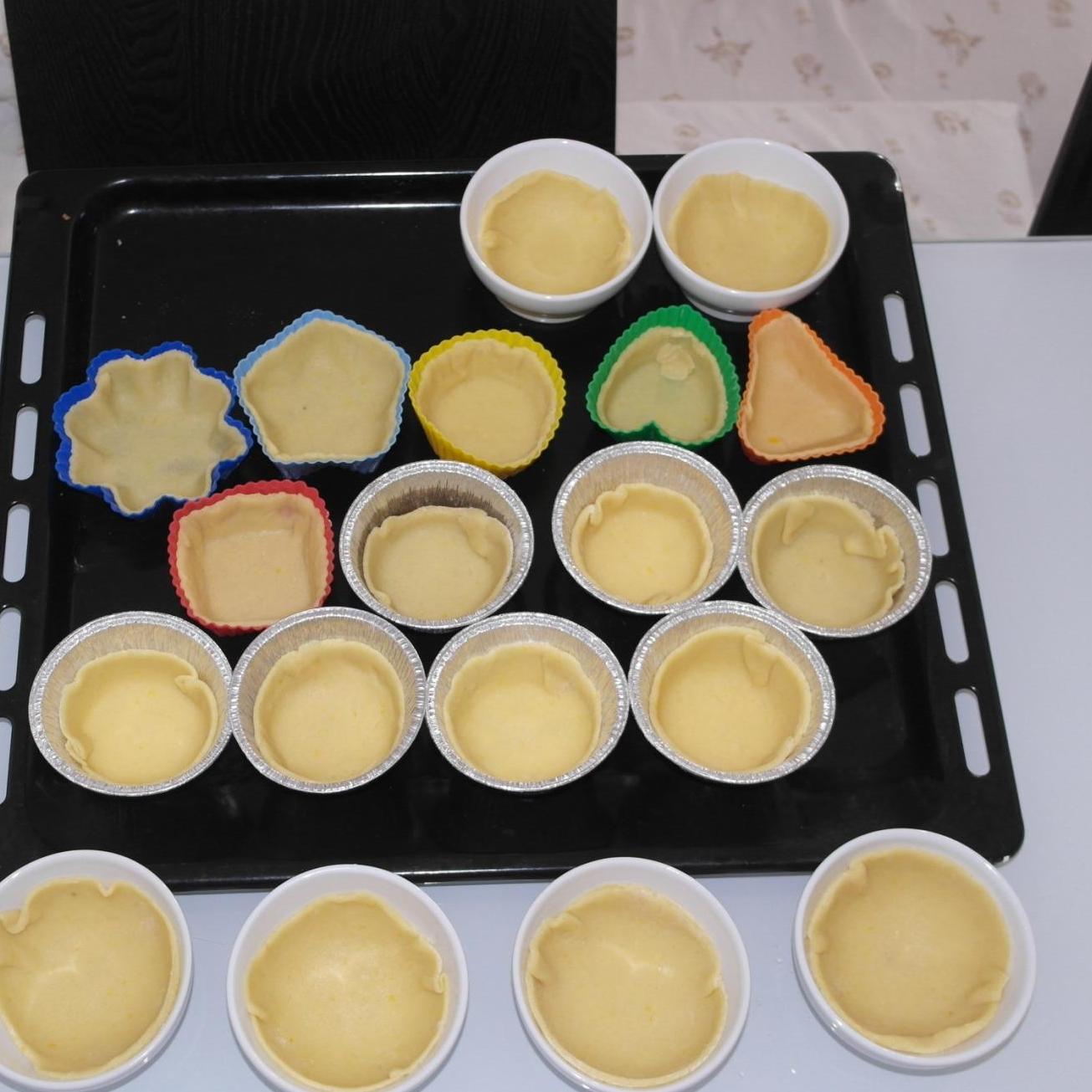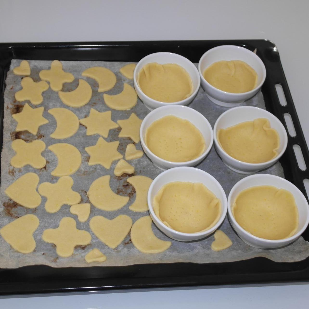 Mttere la pasta frolla nei pirottini. Io ho ottenuto 20 tartellette e con la pasta in eccesso ho fatto dei biscottini che ho usato per decorazione.